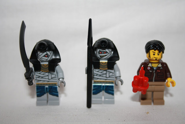 Au niveau des minifigurines, deux momies standards et un Jack Raines en blouson (bienvenu lui aussi, ça évite de se retrouver avec un 4e clone à cartouchière). Je ne reviendrai pas sur les minifigurines, j'ai donné mon avis X fois, et elles sont clairement à mes yeux un des gros points forts de cette gamme.